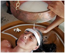 Shiro vasti- refers to keeping the oil in the vertex for some time. This is extremely effective in the treatment of headache, stress, hypertension, psychological disorders etc.